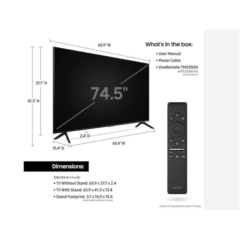 75 inch tv width samsung